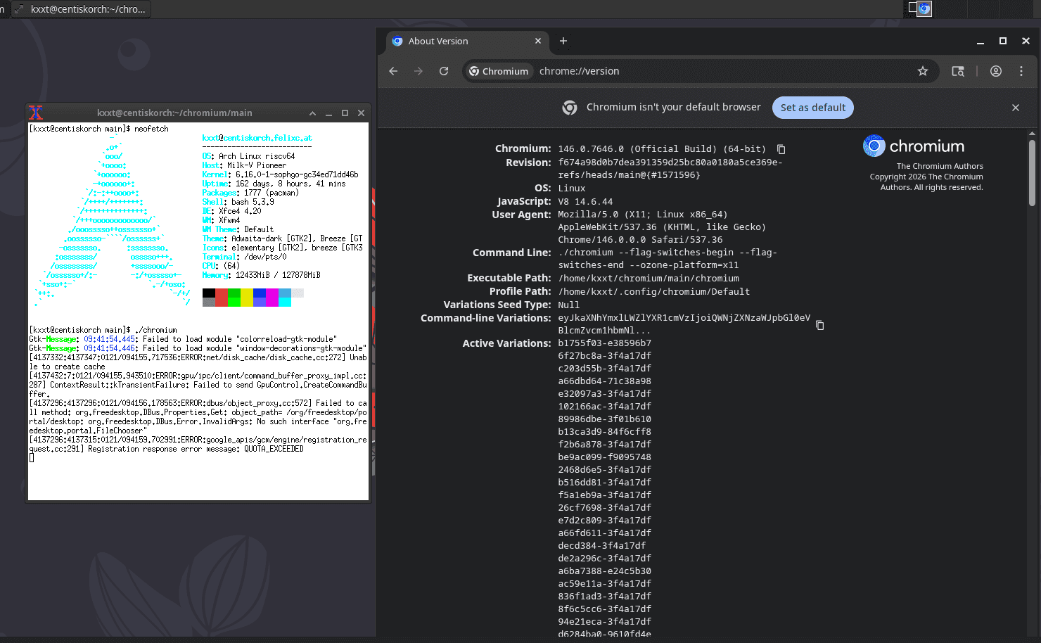 Special thanks to felixonmars for providing me remote access to the Milk-V Pioneer box, which I could test my Chromium builds on.